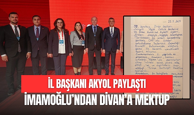 Tutuklu bulunan İstanbul Büyükşehir Belediye Başkanı ve CHP’nin cumhurbaşkanı adayı Ekrem İmamoğlu, araladında CHP Bartın İl Başkanı İsmail Cem Akyol’un da bulunduğu divana mektup gönderdi. CHP Bartın İl Başkanı İsmail Cem Akyol, mektuba ilişkin yaptığı açıklamada iu ifadelere yer verdi: