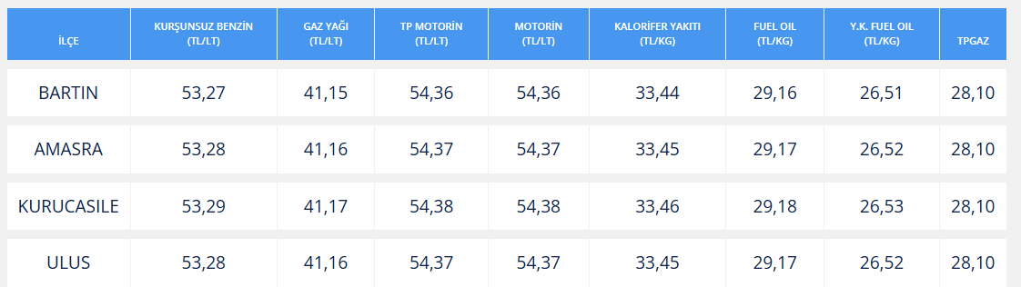 Sektör kaynaklarından edinilen bilgilere göre, 19 Ekim Cumartesi gününden itibaren benzin litre fiyatına 1 lira indirim uygulanması bekleniyor. Bu indirimin pompaya yansıması halinde büyük şehirlerde benzin fiyatları şu şekilde yeniden oluşabilir: İstanbul’da 51,18 TL, Ankara’da 52,03 TL ve İzmir’de 52,35 TL olacağı tahmin ediliyor. Bartın’da ise güncel akaryakıt fiyatları şu şekilde: