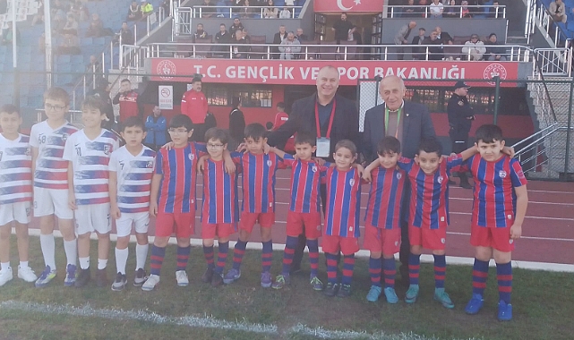 BAL Ligi 4.Grup'ta 6.ci hafta maçında Atatürk Stadı'nda oynanan Bartınspor ile YeniçağaSpor maçında iki takım futbolcuları, Bartın Futbol Okullarında eğitim gören minik oyuncularla seremoniye çıktı. Bartın ASKF başkanı minik oyuncularla hatıra fotoğrafında yer aldı.