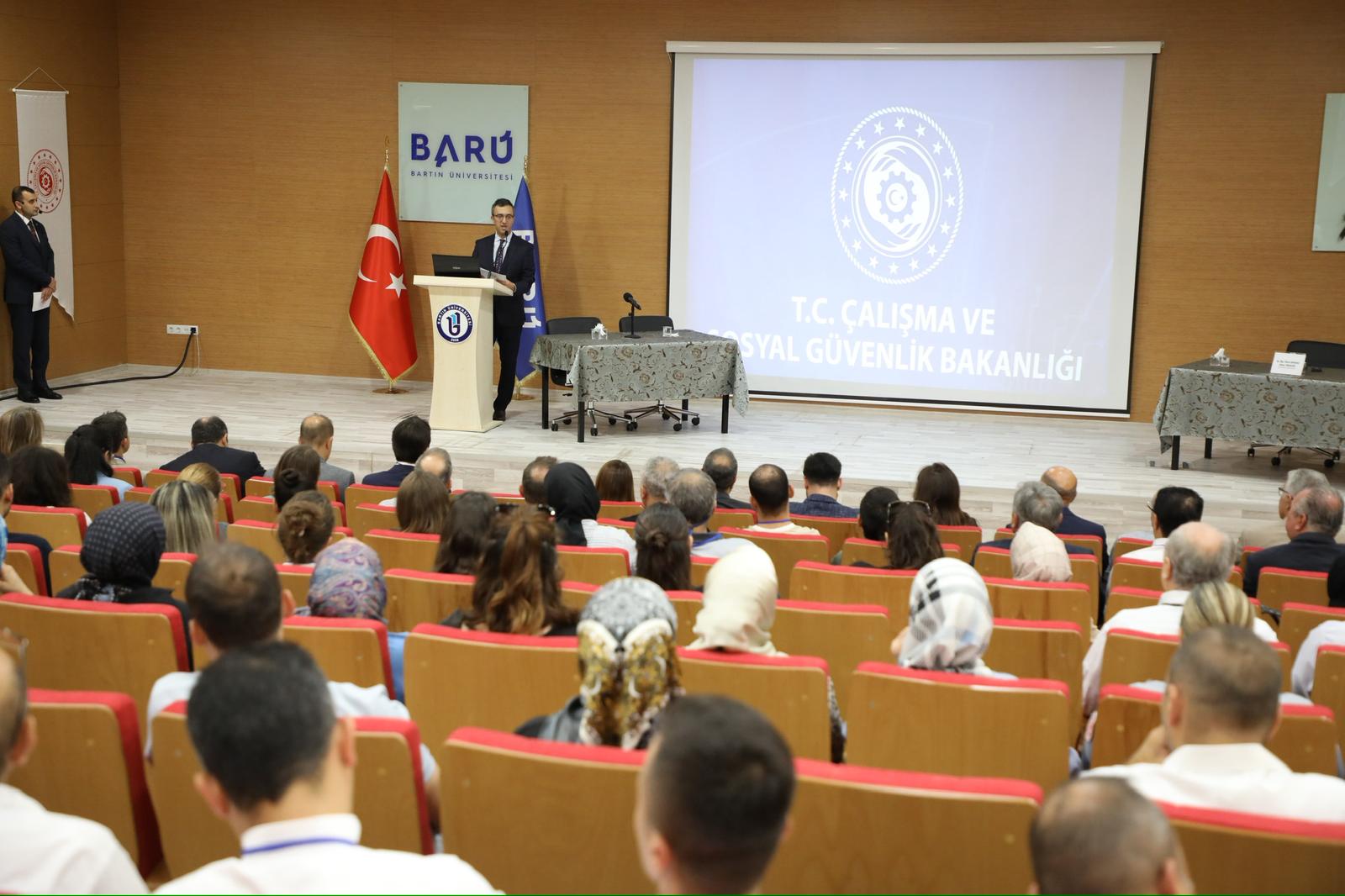 Bartın Çalışma ve İş Kurumu koordinesinde, Çalışma ve Sosyal Güvenlik Bakanlığı Çalışma Genel Müdürlüğü tarafından “Dönüşen Çalışma Hayatında İşçi-İşveren Buluşmaları” konulu panel gerçekleştirildi. Bartın Üniversitesi Kutlubey Yerleşkesi Konferans Salonu’nda düzenlenen programa, kamu kurum ve kuruluş temsilcileri, akademisyenler, iş dünyası ve öğrenciler katıldı.