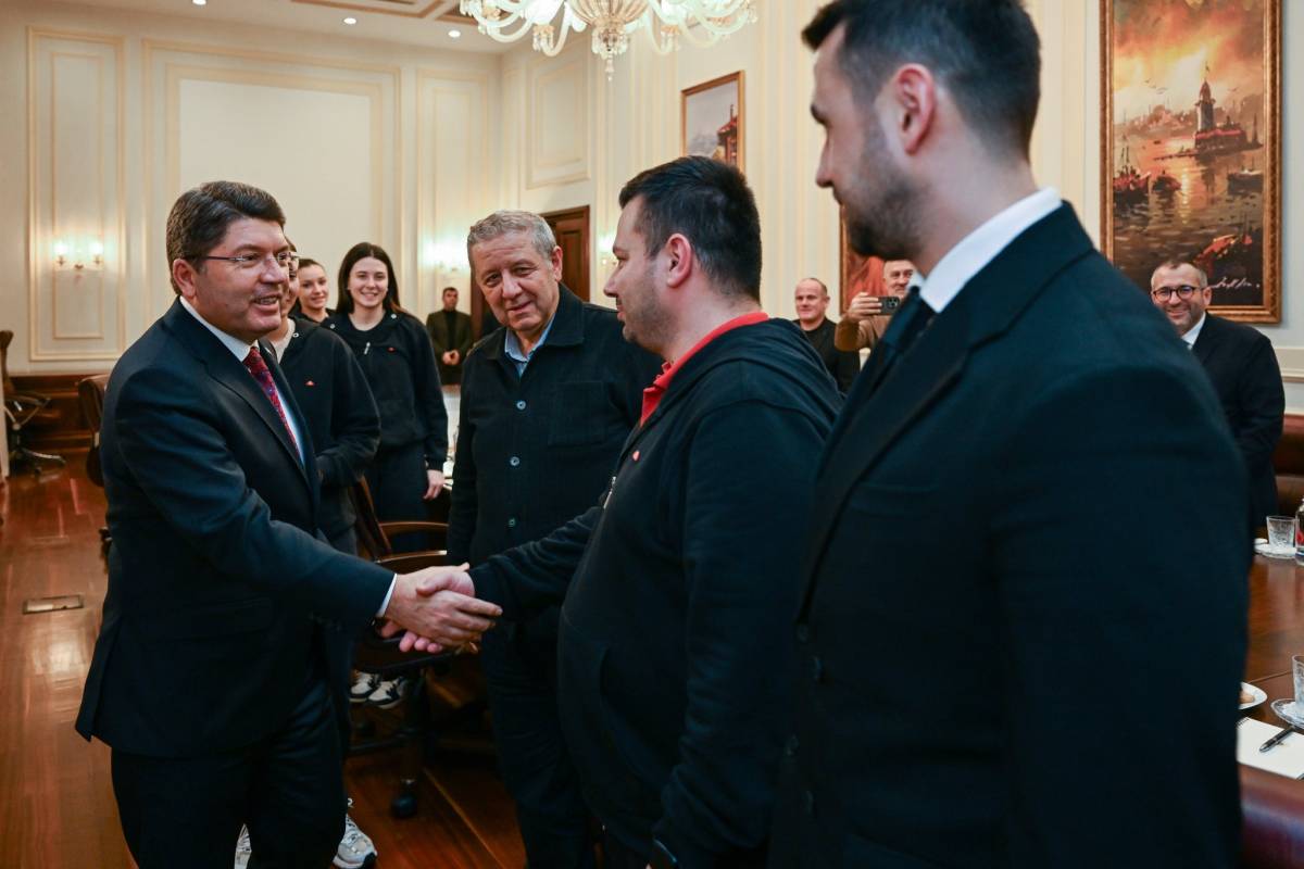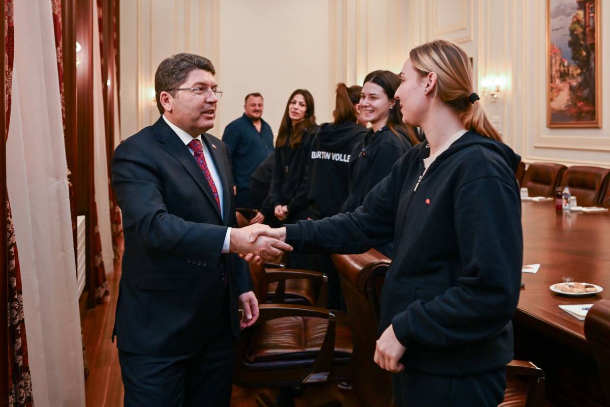 Türkiye Voleybol Federasyonu Kadınlar 2. Ligi 10. Grup’ta oynadığı 18 maçını kazanan Bartın Volley Academy Kadın Voleybol ligde de namağlup liderliğini sürdürüyor. Sezon başı hedefini 1.Lig olarak belirleyen Bartın Volley Academy Spor kulüp başkanı Necmi Balık ve voleybol takımı oyuncuları Adalet Bakanı Yılmaz Tunç'u ziyaret etti.