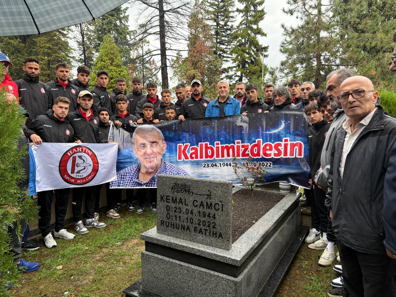 Ziyarette futbolcular Kalbimizdesin pankartı açtı. Kırmızı-Siyahlı camiasının , kulüpte uzun yıllar hizmet eden değerlerine ve geçmişine bağlılık bir kez daha vurgulanırken, Bartınspor Başkanı ve yönetim kurulu spor camiasının duayen ismi Kemal Camcı'yı mezarı başında anarak unutmamaları taktirle karşılandı.