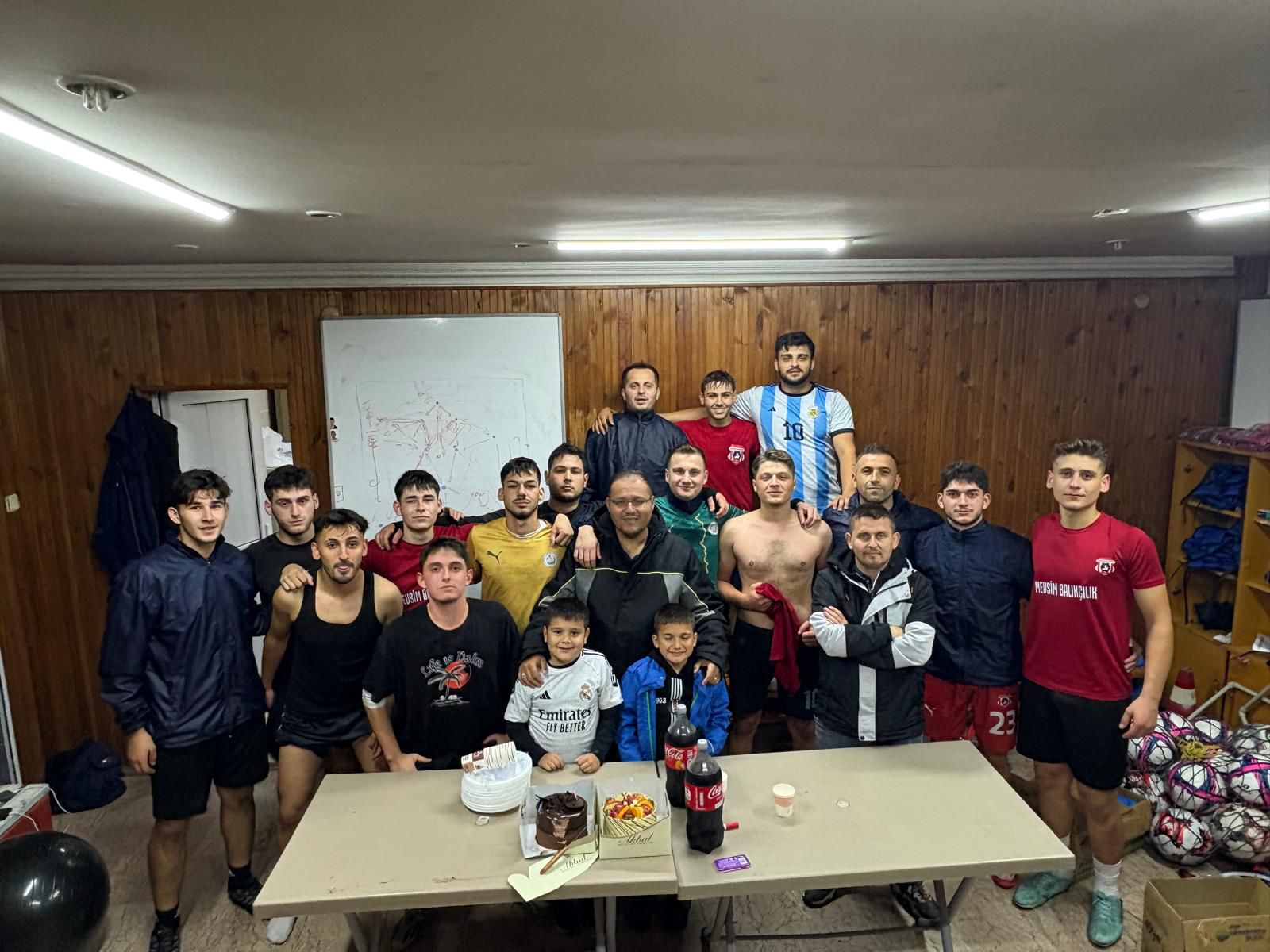 Kurucaşile Kamp eğitim tesisleri sentetik futbol sahası soyunma odasında düzenlenen kutlamada, kulüp başkanı Gürsoy kendisi için özel hazırlanan pastayı alkışlar arasında kesti.