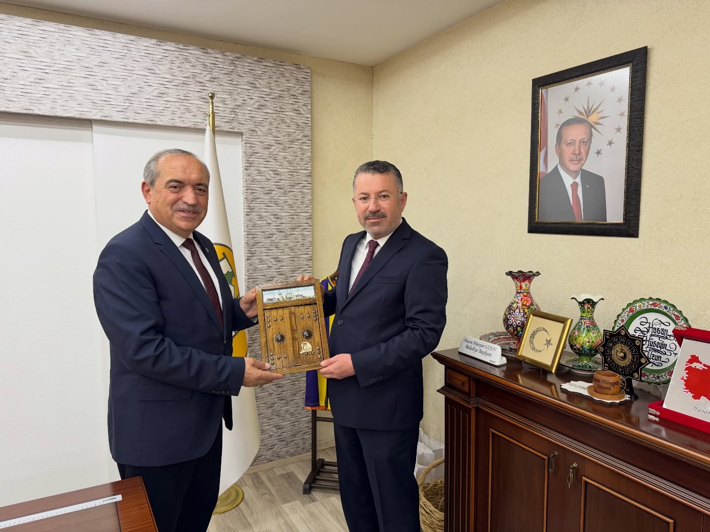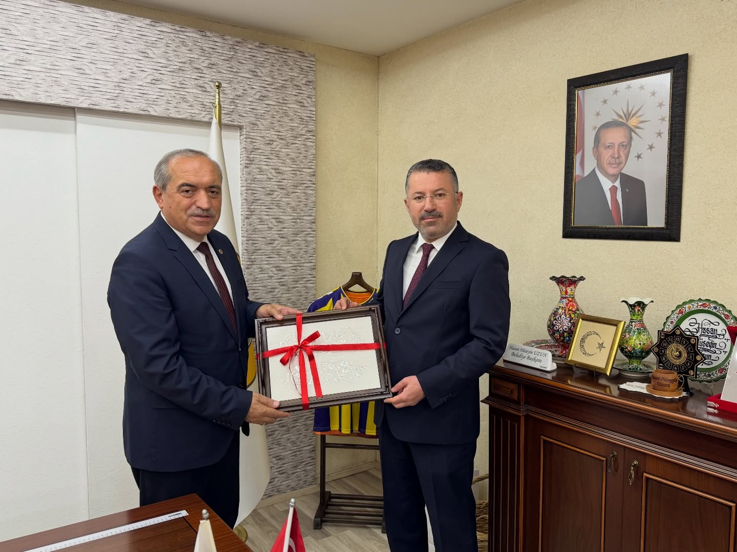 Karşılıklı fikir alışverişinin yapıldığı görüşmede, üniversite-belediye iş birliği, yerel kalkınma ve eğitim odaklı projeler üzerine istişarelerde bulunuldu. Başkan Uzun, kendilerine hediye takdimi dolayısıyla teşekkür ederken, nazik ziyaretlerinden ötürü tüm heyete şükranlarını sundu.