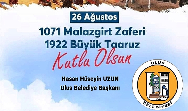 Ulus Belediye Başkanı Hasan Hüseyin Uzun, Malazgirt zaferi ve Büyük Taarruz Zaferi yıl dönümü sebebiyle mesaj yayımladı.