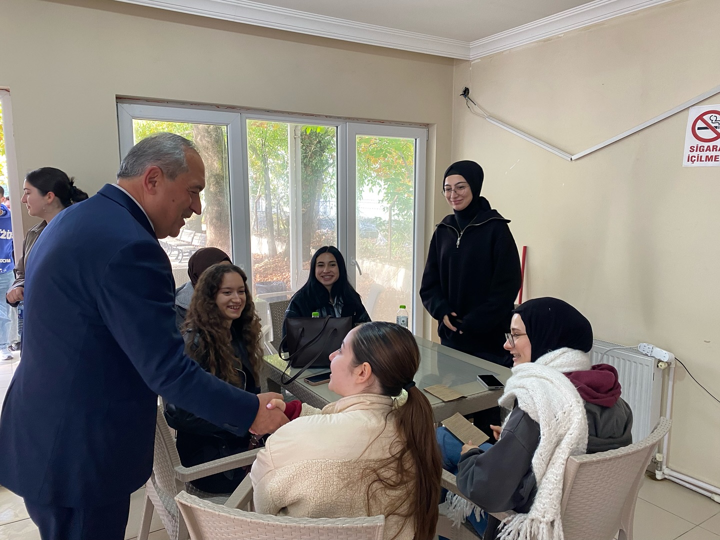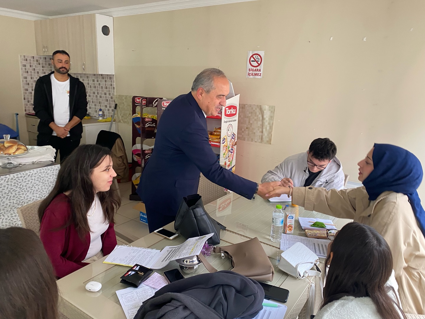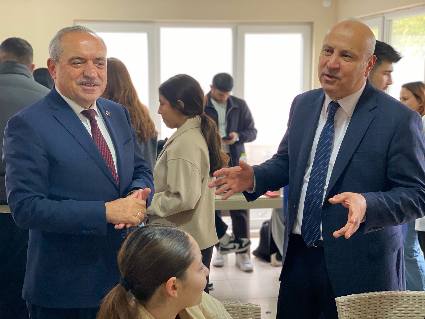 Söyleşi öncesinde Ulus Belediye Başkanı Uzun, üniversite kantininde öğrencilerle bir araya gelerek çay içip samimi bir sohbet gerçekleştirdi.