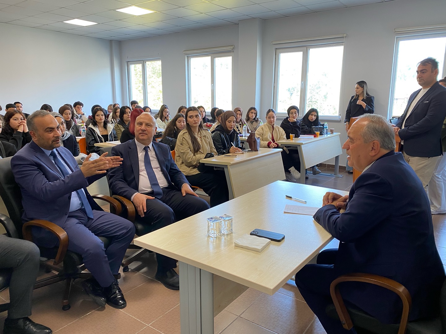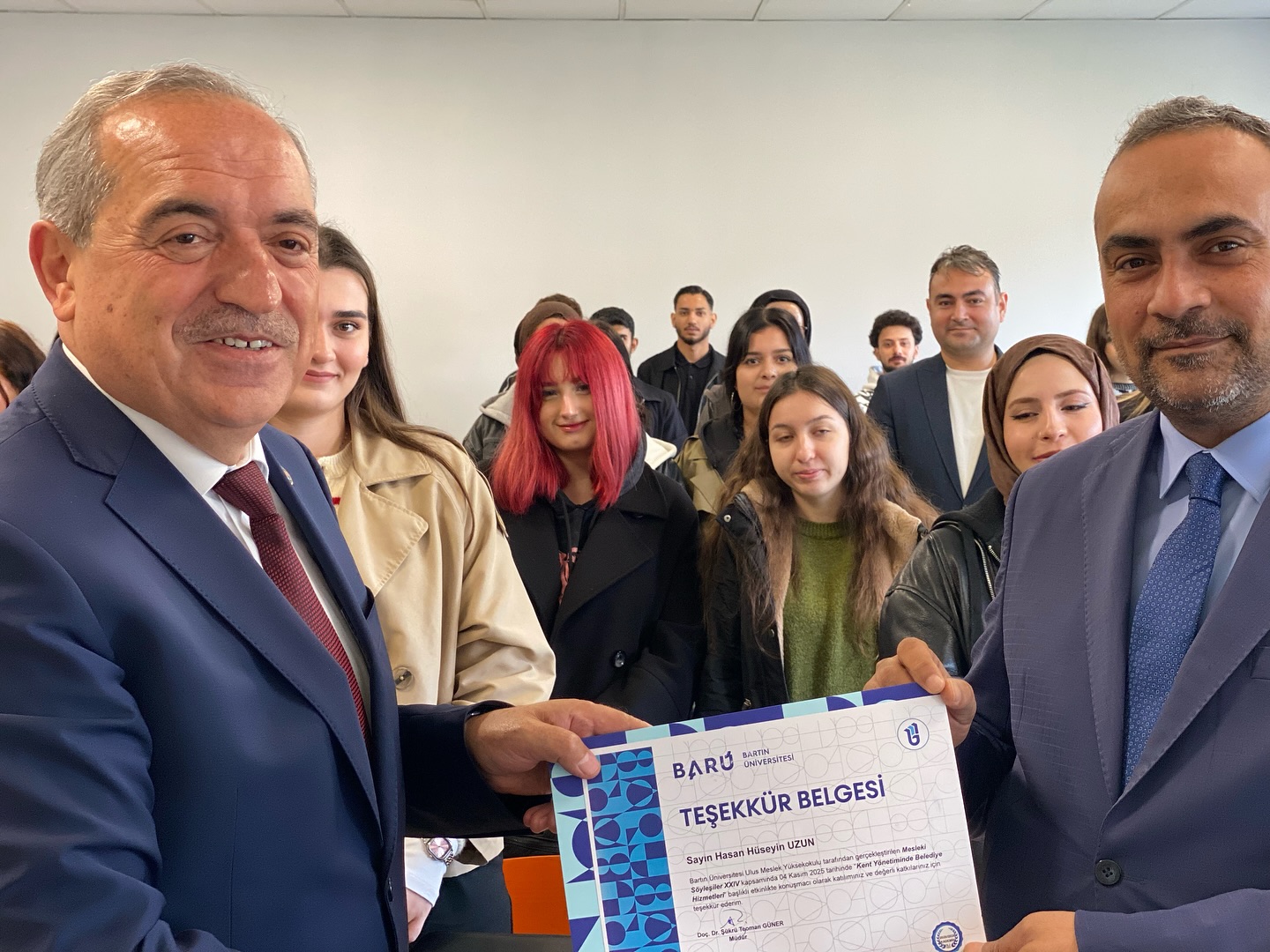 Ulus Belediye Başkanı Hasan Hüseyin Uzun, Bartın Üniversitesi Ulus Meslek Yüksekokulu Büro Yönetimi ve Sekreterlik Bölümü tarafından düzenlenen “Kent Yönetimi ve Belediye Hizmetleri” konulu mesleki söyleşiye katıldı.