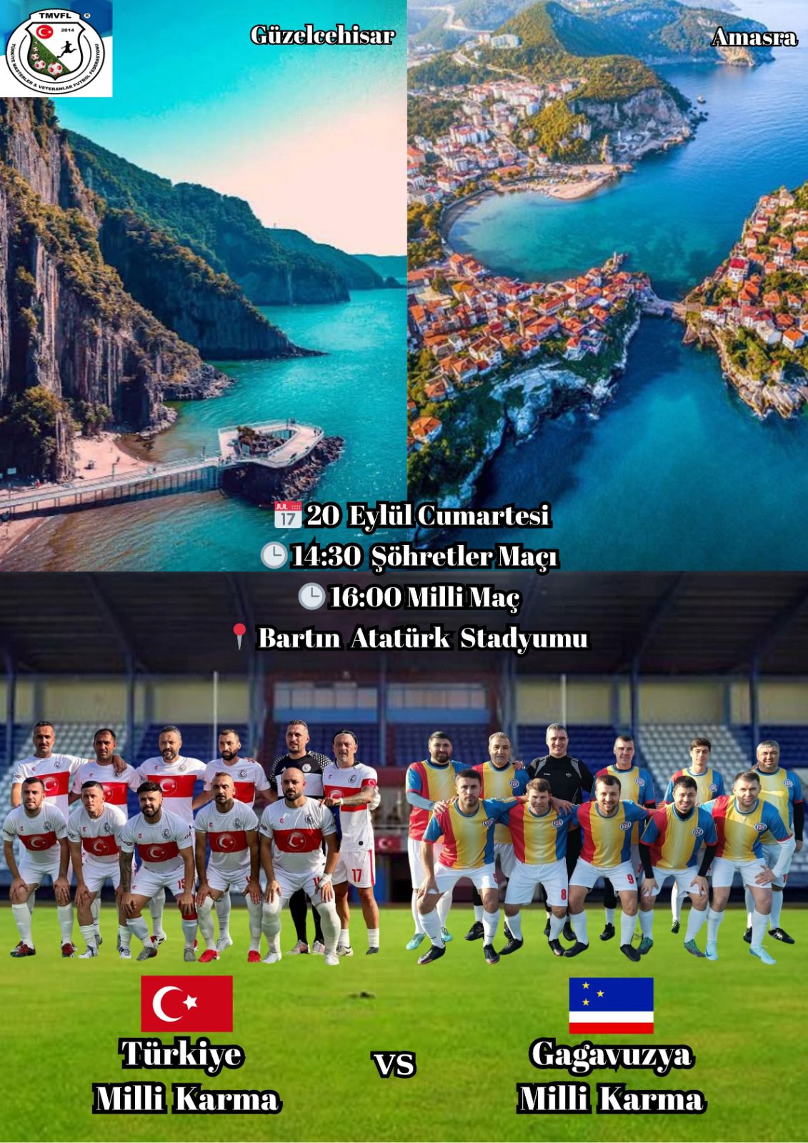 20 Eylül Cumartesi günü Bartın Atatürk Stadı'nda Saat: 16:00'da Bartın atatürk Stadı'nda oynanacak olan Türkiye Milli Karma arasında ki karşılaşma, iki ülkenin veteren oyuncularını bir araya getirecek. İki ülkenin milli takım oyuncuları aynı zamanda dostluk ve akrdeşlik mesajı verecek.
