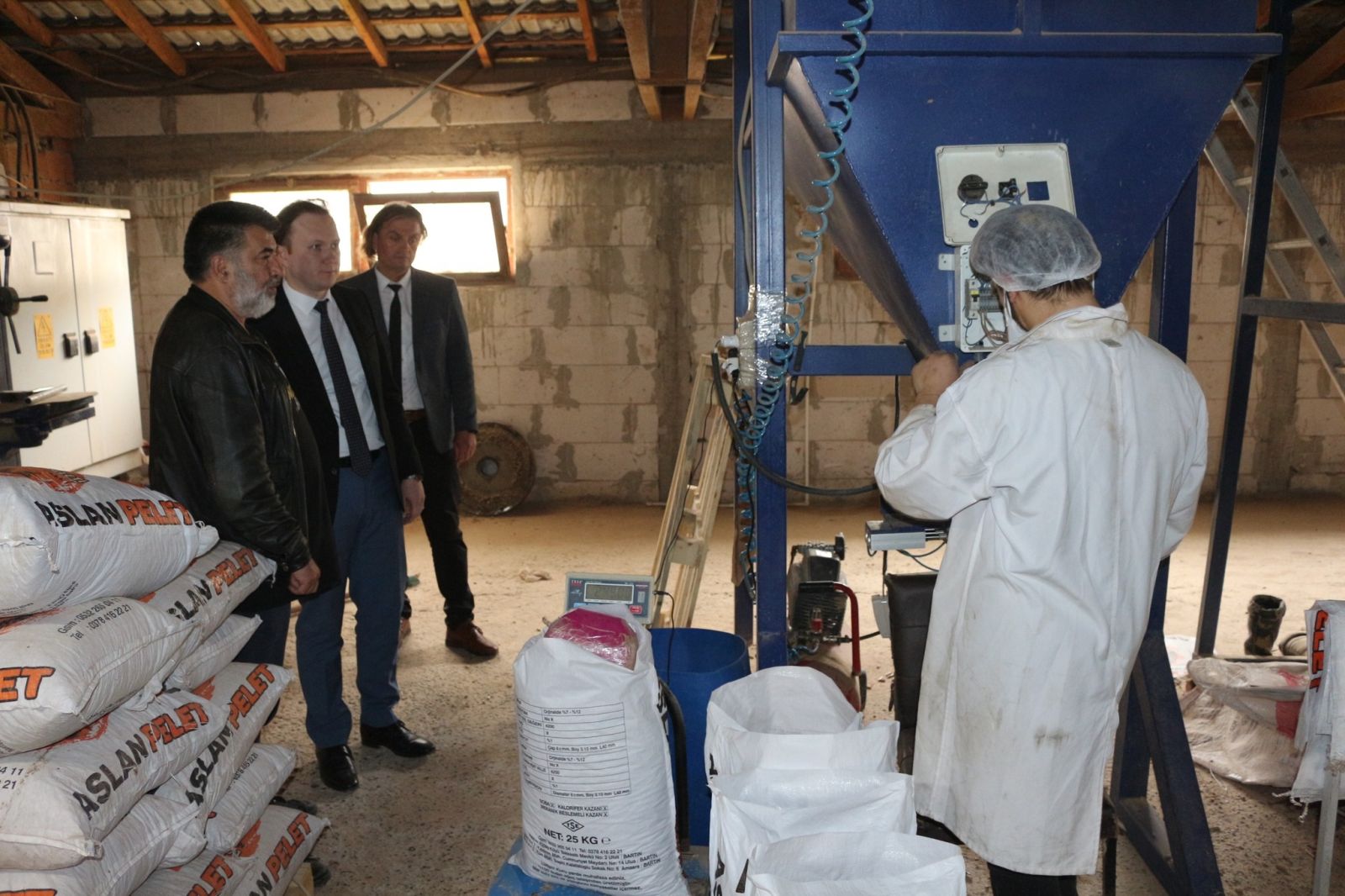 Ulus Kaymakamı Mehmet Sadık Kılıç, Köylere Hizmet Götürme Birliği Müdürü Atila Duman ile beraber Ulus Kaymakamlığı Köylere Hizmet Götürme Birliği bünyesinde Eldeş köyünde bulunan eski Süt fabrikası binalarında ticari faaliyete başlayan Aslan Pelet, Çakır Orman ve Elmacıoğlu Ticaret firmalarını ziyaret etti.