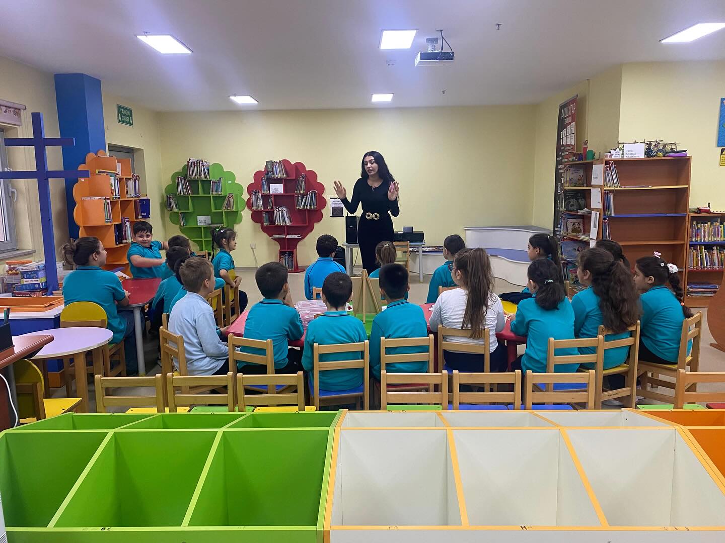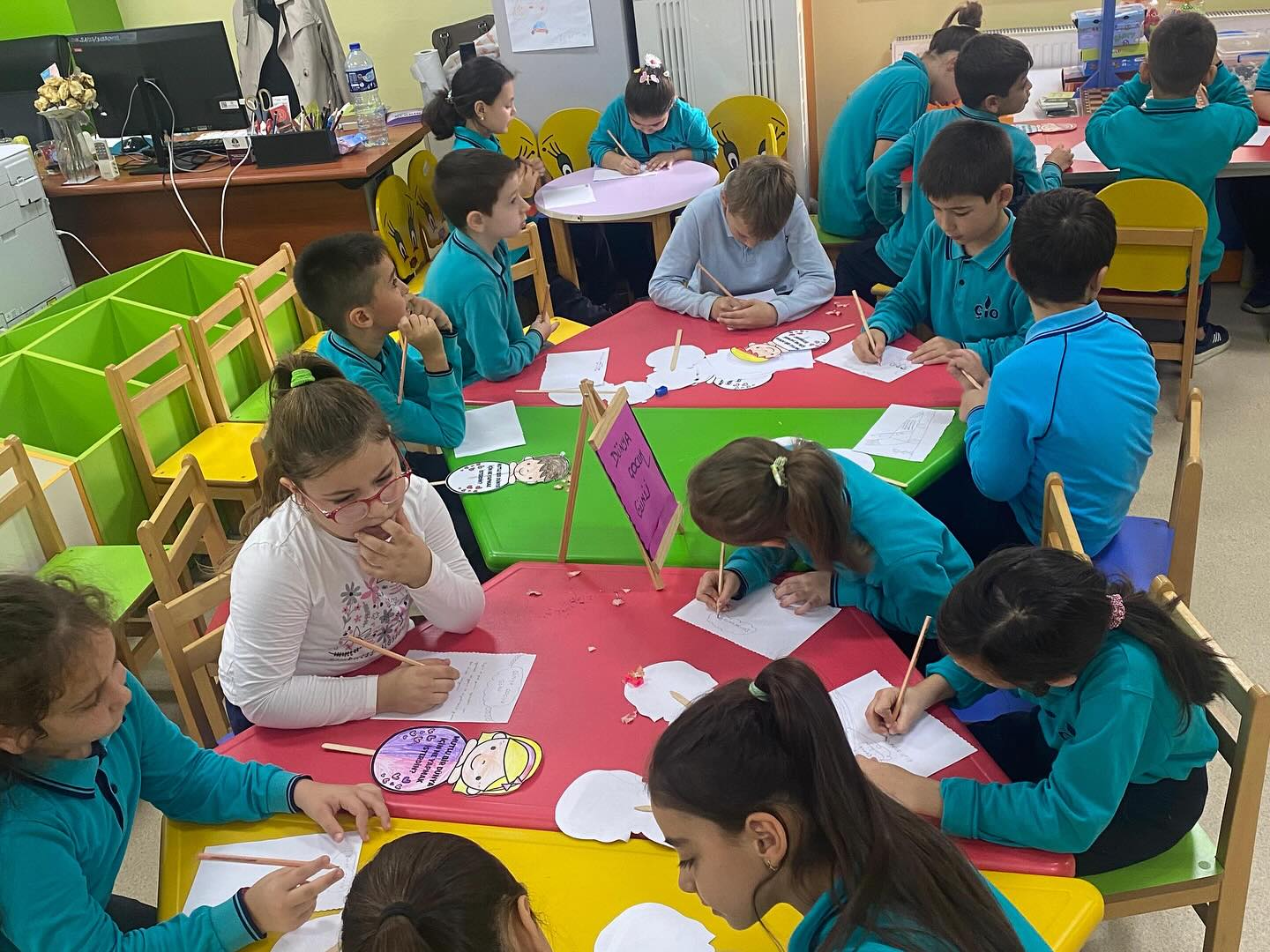 Kütüphane personeli rehberliğinde oluşturulan “Mutluluk Dairesi”nde öğrencilerle Dünya Çocuk Günü’nün anlamı ve önemi üzerine sohbet edildi. Çocuklar, kendi dünyalarından bakarak “mutluluk” kavramını anlattı ve barış, sevgi, dostluk gibi evrensel değerler üzerine fikirlerini paylaştı.