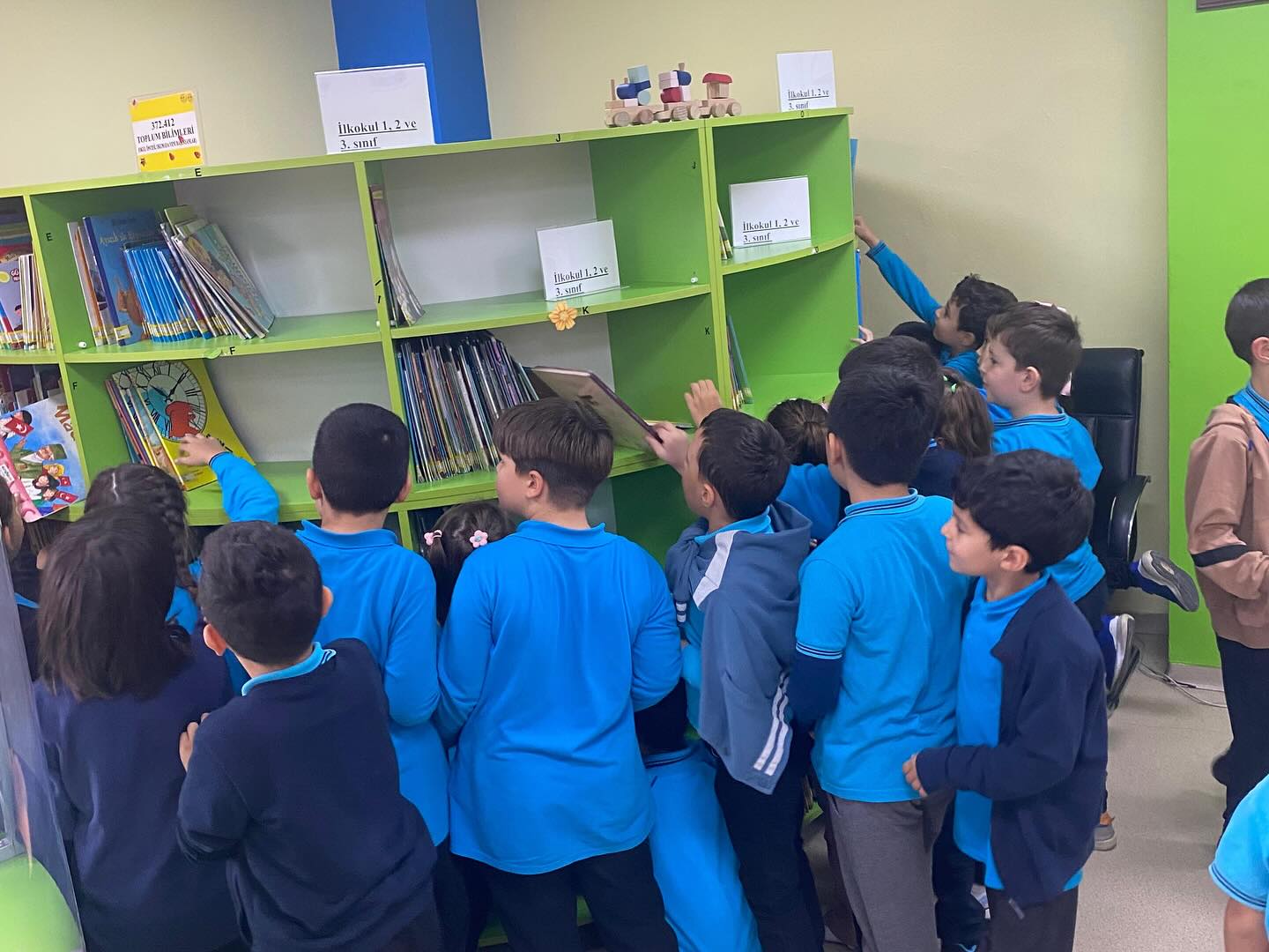 Kütüphane personeli tarafından sıcak bir şekilde karşılanan öğrenciler, öncelikle kütüphane tanıtımı ve üyelik işlemleri hakkında bilgilendirildi. Minik misafirlere kütüphanenin nasıl kullanılacağı, hangi etkinliklerin düzenlendiği ve kitap ödünç alma süreci gibi konular anlatıldı.