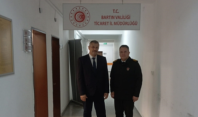 Bartın Garnizon Komutanı Deniz Kıdemli Albay Serhat Sır, Bartın Ticaret İl Müdürü Erhan Özcan’a iade-i ziyarette bulundu. Ziyaret sırasında İl Müdürü Özcan, İl Müdürlüğü bünyesinde yürütülen iş ve işlemler hakkında detaylı bilgiler verdi.