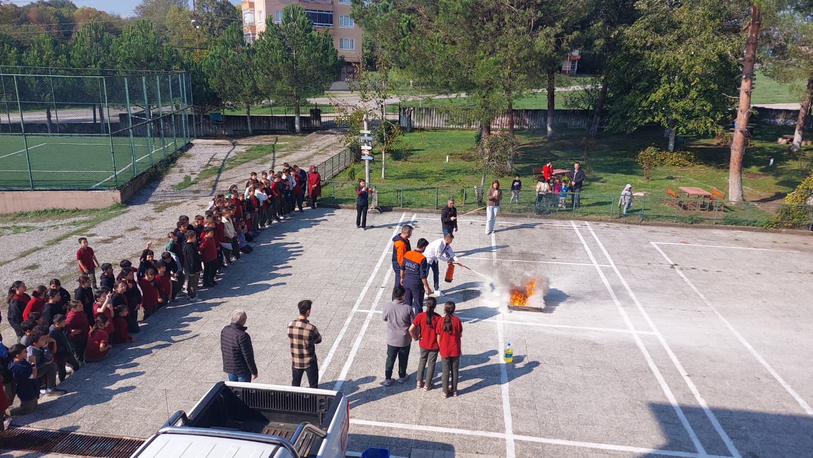 Yangın tatbikatında ise öğrenciler, tahliye yollarının nasıl kullanılacağını, yangın anında panik yapmadan nasıl hareket edileceğini ve yangın söndürme tüplerinin doğru kullanımını uygulamalı olarak öğrendi.