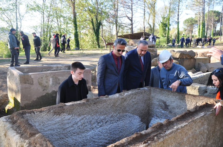 Bartın Üniversitesi (BARÜ) Rektörü Prof. Dr. Ahmet Akkaya, Zonguldak Filyos’ta yer alan Tios Antik Kenti’nin doğu nekropolünde sürdürülen kazı çalışmalarını yerinde inceledi. Kazı başkanlığını Cumhurbaşkanlığı kararıyla BARÜ adına yürüten Edebiyat Fakültesi Sanat Tarihi Bölümü'nden Prof. Dr. Şahin Yıldırım, Rektör Akkaya'ya antik kentin tarihi önemi ve bugüne kadar ortaya çıkarılan eserler hakkında bilgiler verdi. Ziyarette Zonguldak Valisi Osman Hacıbektaşoğlu, Zonguldak Milletvekili Ahmet Çolakoğlu, Çaycuma Kaymakamı Adem Kaya, Filyos Belediye Başkanı Erol Acar da yer aldı.