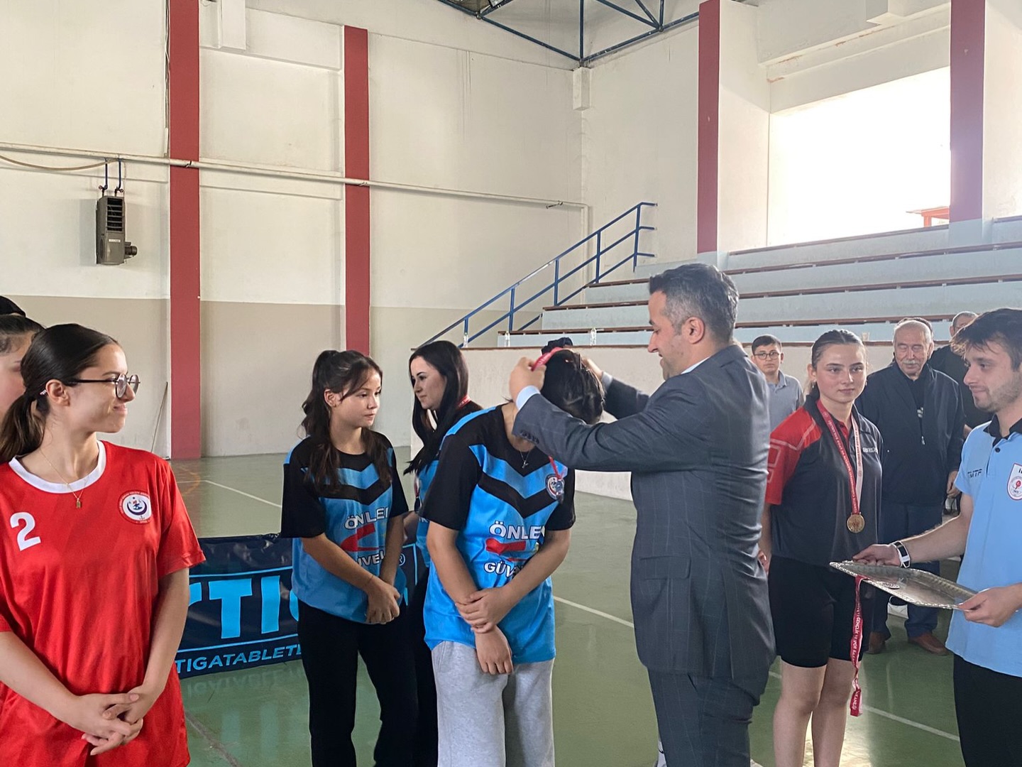 Dereceye giren takımlara ödüllerini;Ulus Kaymakamı Fırat Kadiroğlu, Ulus İlçe Milli Eğitim Müdürü Levent Ok, Masa Tenisi İl Temsilcisi Ferhat Çelikkol ve Masa Tenisi antrenörü Mahir Melekoğlu takdim etti.
