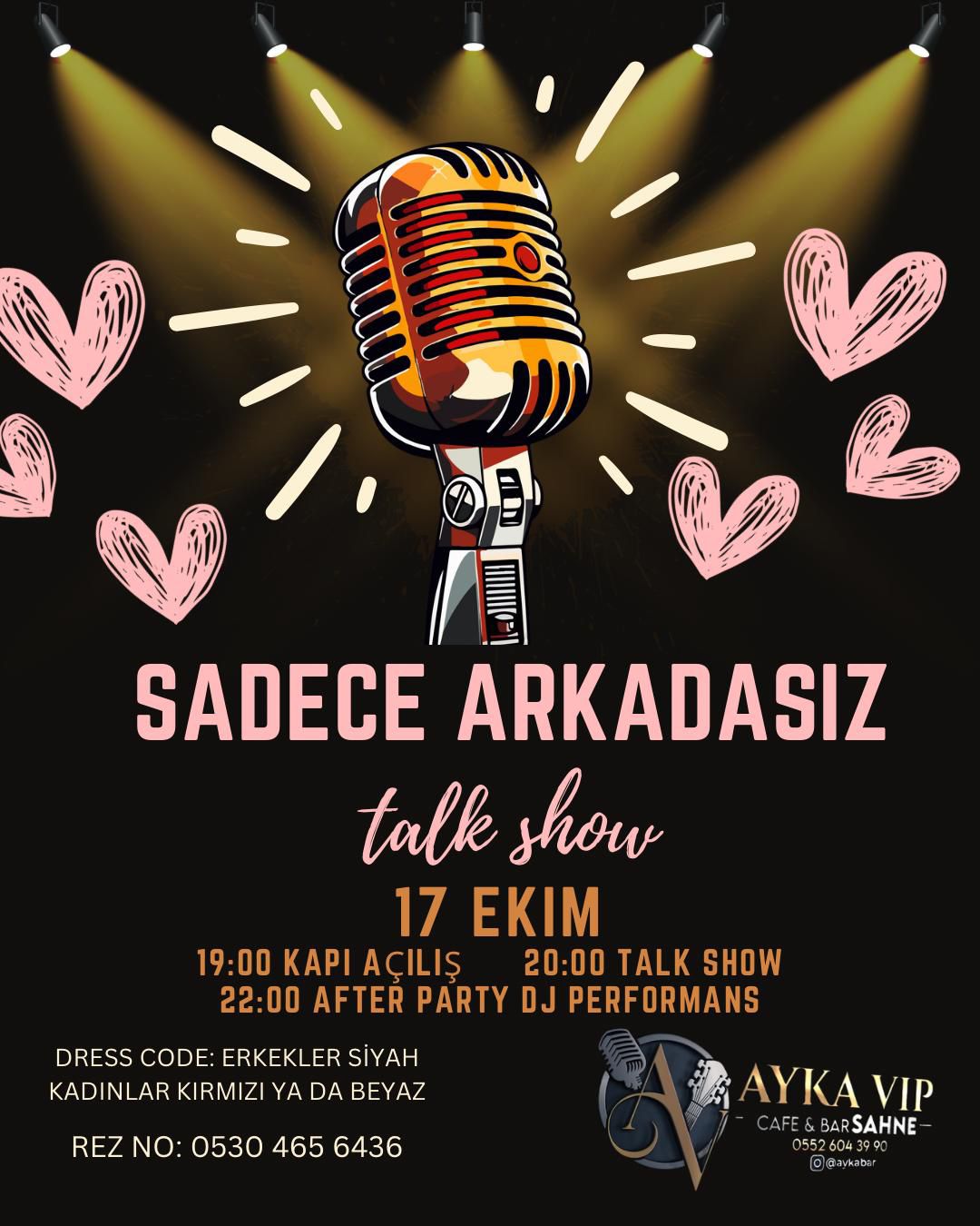 Bartın’ın gözde eğlence mekânlarından Ayka VİP Cafe & Bar, 17 Ekim Cuma akşamı eğlence dolu bir programa ev sahipliği yapacak. Gecenin açılışında sevilen komedyen Furkan Bozdağ, ‘Sadece Arkadaşız’ isimli Talk Show performansıyla izleyicilere keyifli anlar yaşatacak.
