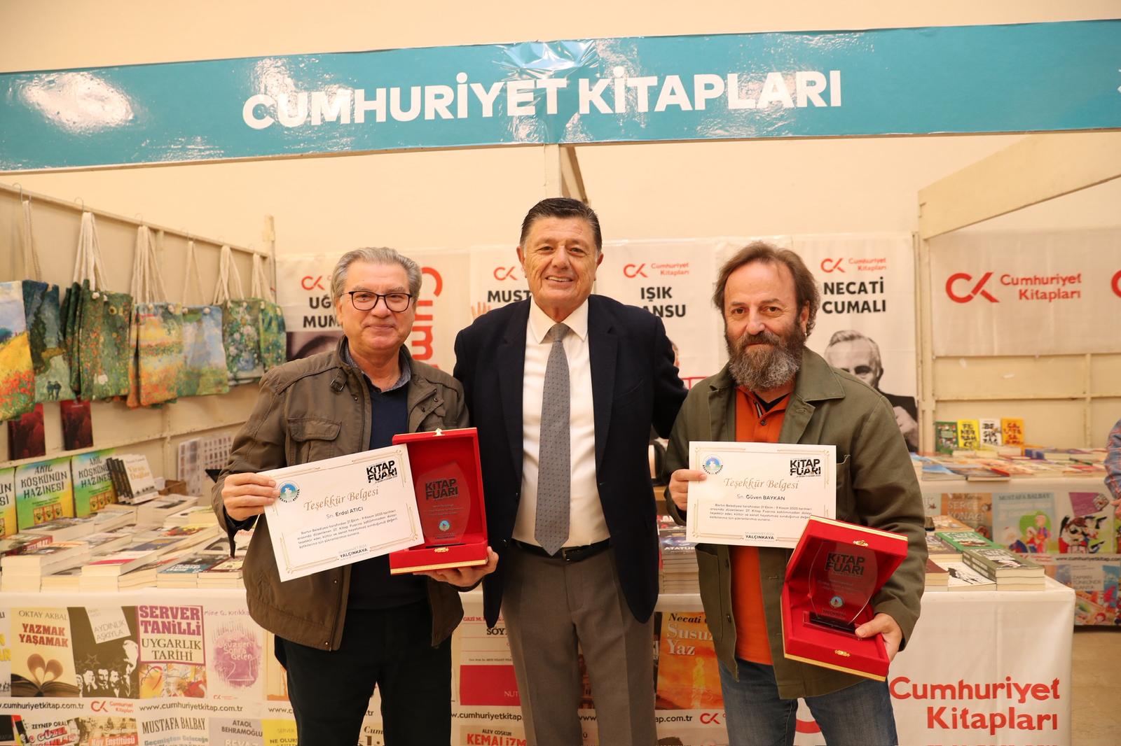 Belediye Başkanı Muhammet Rıza Yalçınkaya, fuara değerli katkılarda bulunan yazar ve konuklara plaket ve teşekkür belgelerini takdim etti.